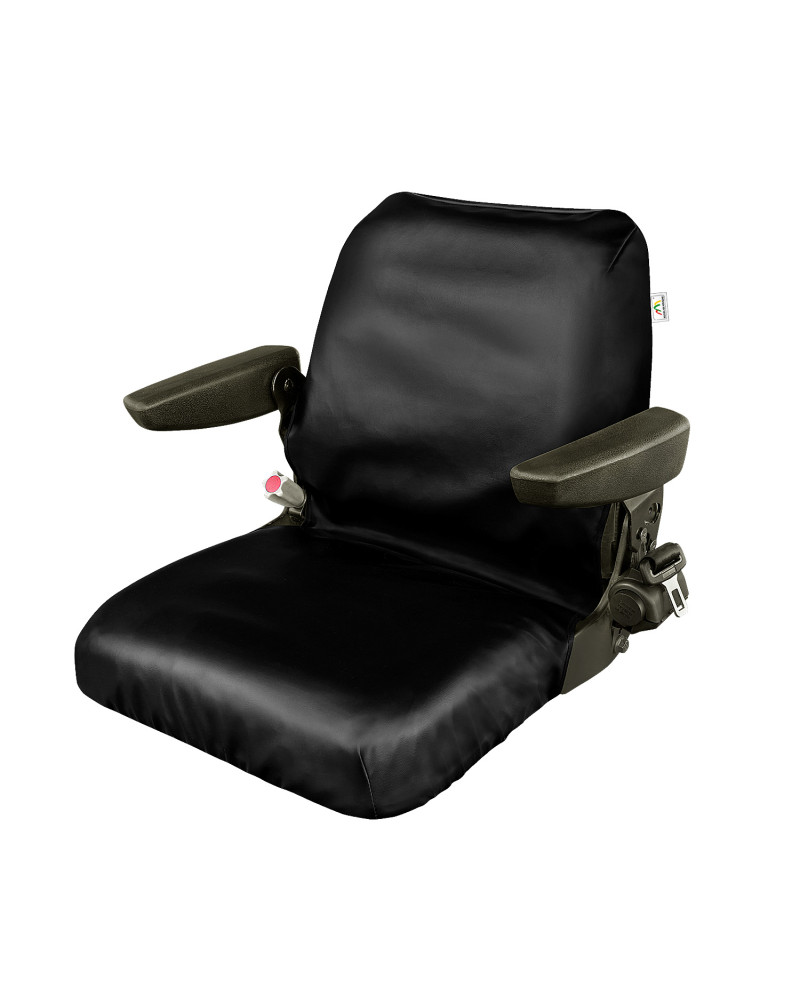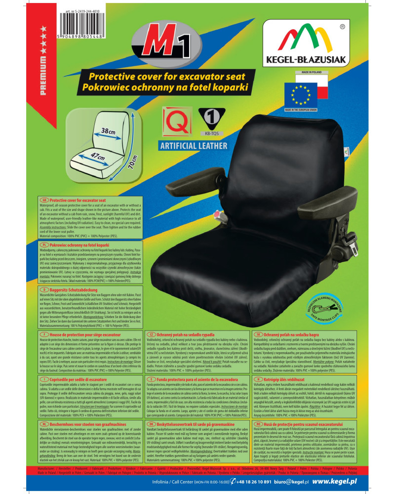 Wasserdichte Ganzjahres-Schutzabdeckung für Sitze von Baggern mit oder ohne Kabine. Sie passt auf einen Sitz mit der oben abgebildeten Größe und Form. Sie schützt den Baggersitz vor Schmutz und Abrieb und bei Baggern ohne Kabine zusätzlich vor Regen, Schnee, Frost und Sonnenlicht (schädlicher UV-Strahlung) sowie vor Staub und anderem Verunreinigungen. Sie ist aus wasserdichtem, benutzerfreundlichem lederähnlichem Material mit hoher Beständigkeit gegen alle Witterungseinflüsse (einschließlich UV-Strahlung) hergestellt. Sie ist leicht zu reinigen und es ist keine besondere Pflege erforderlich.