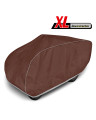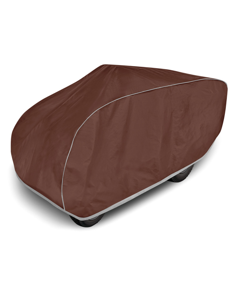 Ganzjahresabdeckung zum Schutz eines im Freien gelagerten Rasentraktors vor widrigen Umwelteinflüssen. Dank ihrer speziellen Konstruktion läuft das Wasser bei Regen von der Abdeckung ab, ohne unter die Abdeckung zu dringen, und der Wasserdampf wird nach außen abgeleitet. Sie schützt den Rasentraktor vor Regen, Schnee, Frost und Sonnenlicht (schädlicher UV-Strahlung) sowie Verunreinigungen wie Staub, Vogelkot und Baumsäfte. Sie verringert die Korrosion und Alterung von Kunststoffteilen und schützt vor Ausbleichen und Anlaufen von Lacken und Chromteilen. Die Abdeckung hält allen Witterungsbedingungen stand.
