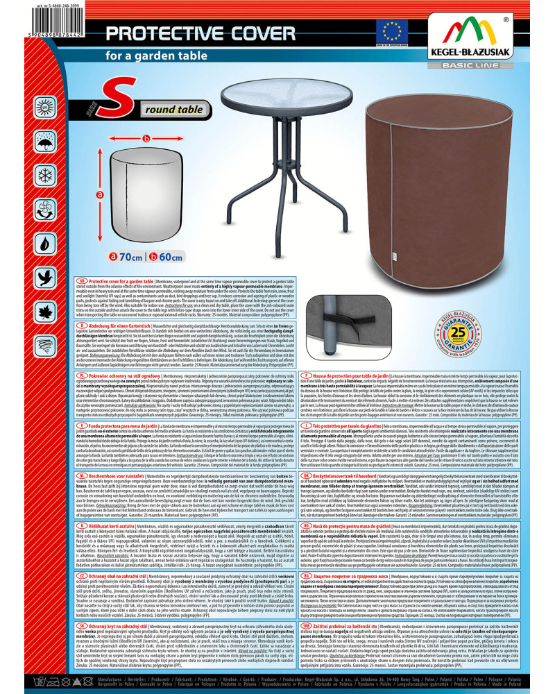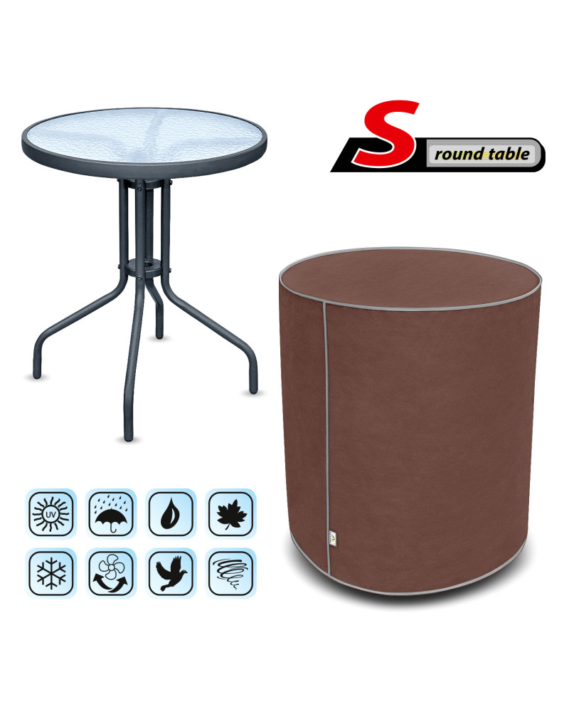 Ganzjahresabdeckung zum Schutz eines im Freien gelagerten Gartentisches vor widrigen Umwelteinflüssen. Dank ihrer speziellen Konstruktion läuft das Wasser bei Regen von der Abdeckung ab, ohne unter die Abdeckung zu dringen. Sie schützt den Tisch vor Regen, Schnee, Frost und Sonnenlicht (schädlicher UV-Strahlung) sowie Verunreinigungen wie Staub, Vogelkot und Baumsäfte. Sie verringert die Korrosion und Alterung von Kunststoff- und Holzteilen und schützt vor Ausbleichen und Anlaufen von Lacken und Chromteilen. Die Abdeckung hält allen Witterungsbedingungen stand. Leicht an- und auszuziehen. Die zusätzlichen Verschlüsse schützen die Abdeckung vor dem Abreißen durch den Wind. Sie ist auch für die Verwendung in Innenräumen geeignet.