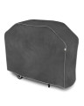 Die Abdeckung ist mit dem aschgrauen Nähten nach außen aufzuziehen und dann mit den an der unteren Innenseite der Abdeckung eingenähten Klettbändern an den Grillfüßen zu befestigen. Die Abdeckung nicht auf einen heißen und/oder nassen Grill aufziehen.