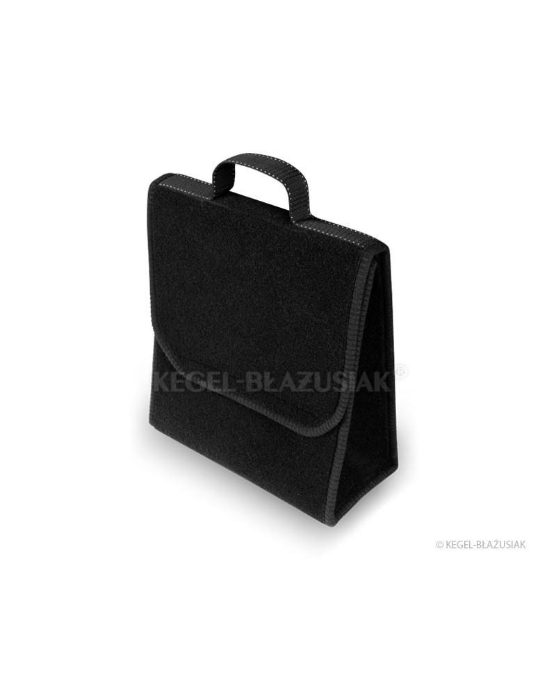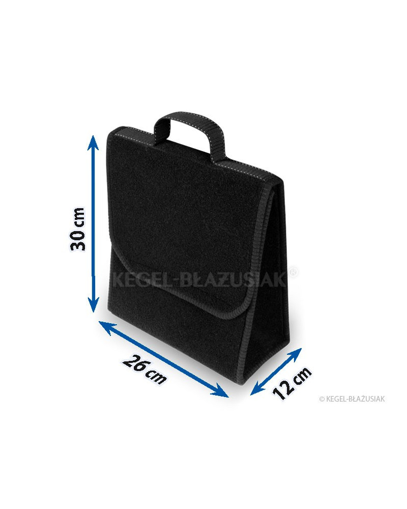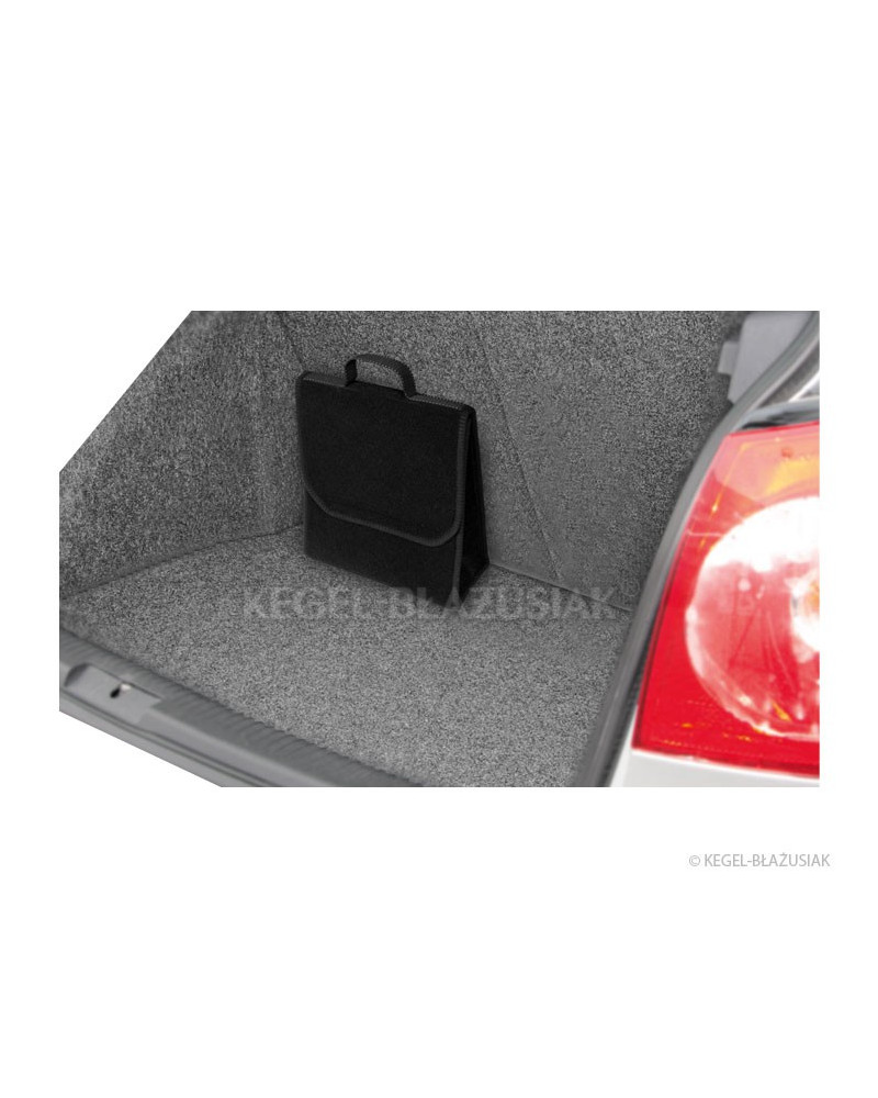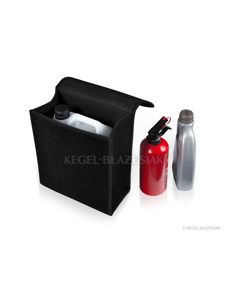 In dieser äußerst praktischen Kofferraumtasche aus wiederverwendbarem Teppichmaterial mit starken Klettverschlüssen am Boden und auf der Rückseite der Tasche können Sie viele, auch schwere und scharfe, Gegenstände verstauen. Sie hat eine praktische vertikale Form, die es ermöglicht, einen Fünf-Liter-Behälter mit Motoröl oder Scheibenwaschflüssigkeit oder einen Kiel-Feuerlöscher sowie andere im Auto notwendige Werkzeuge als auch einen Satz Glühbirnen, Zubehör usw. zu verstauen. Dank der starken, großen Klettverschlüsse, die sich über die gesamte Taschenlänge erstrecken, hält sie sich gut an der Kofferraumauskleidung.