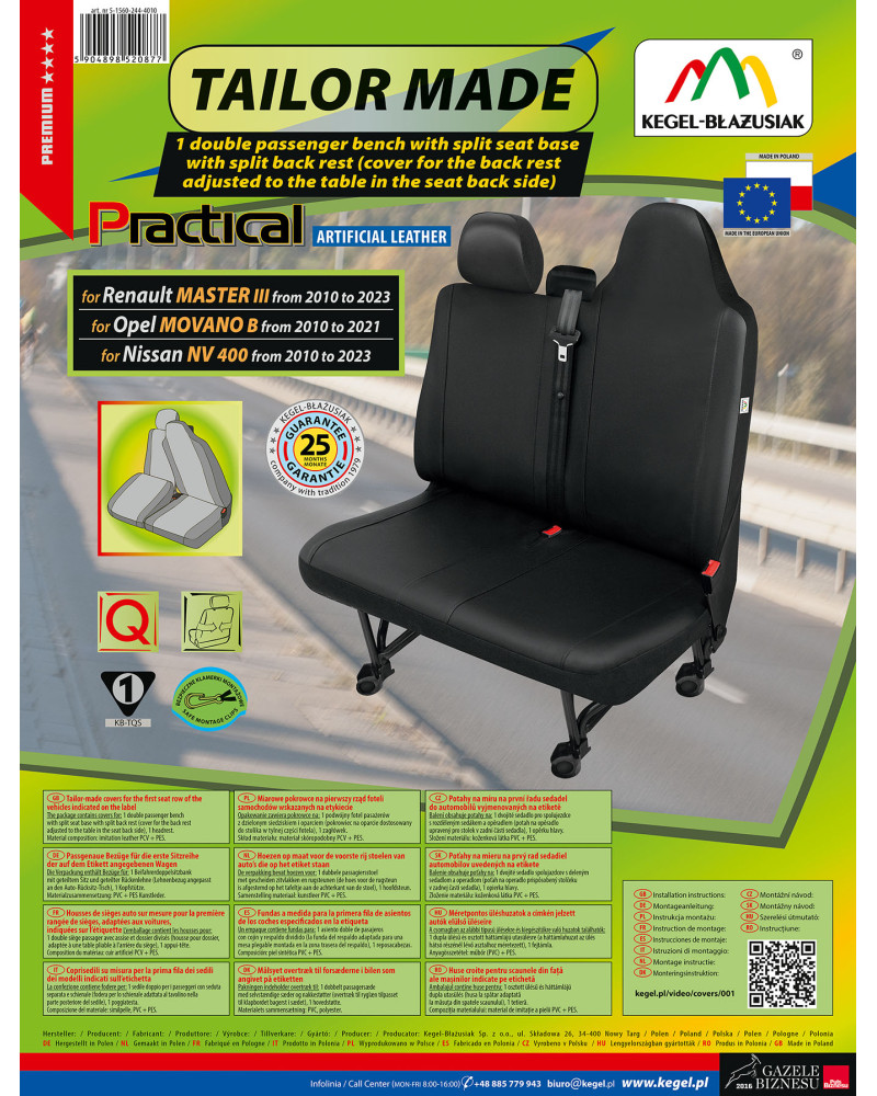 PRACTICAL-Bezüge sind aus extrem haltbarem Ökoleder der neuen Generation gefertigt. Jeder Bezug besteht aus einem robusten und langlebigen Material, das sich dank seiner geeigneten Konstruktion gut an den Sitz anpasst und an ihm haftet, so dass der Bezug nicht verrutschen kann. Die solide Verarbeitung garantiert eine hohe Qualität und eine lange Nutzungsdauer.