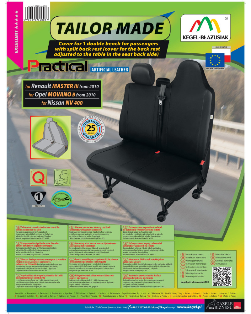 PRACTICAL-Bezüge sind aus extrem haltbarem Ökoleder der neuen Generation gefertigt. Jeder Bezug besteht aus einem robusten und langlebigen Material, das sich dank seiner geeigneten Konstruktion gut an den Sitz anpasst und an ihm haftet, so dass der Bezug nicht verrutschen kann. Die solide Verarbeitung garantiert eine hohe Qualität und eine lange Nutzungsdauer.