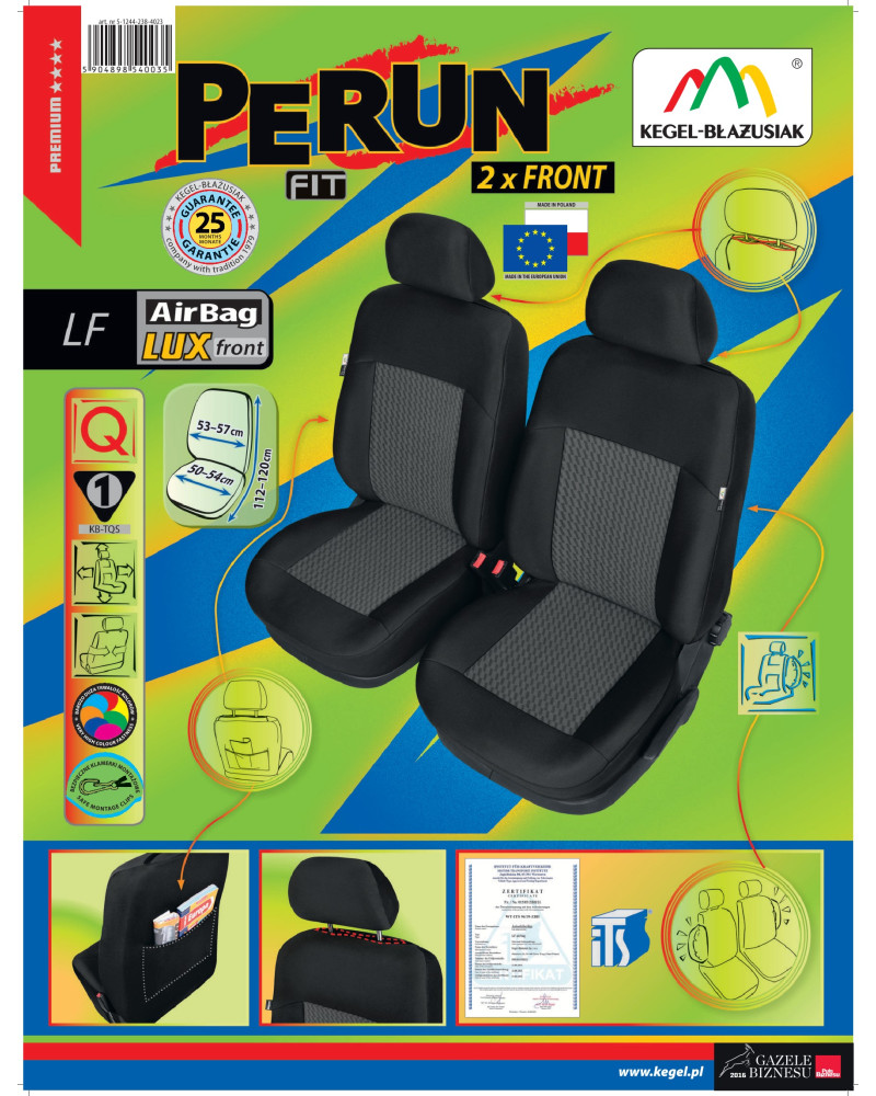 Die PERUN-Bezüge sind sehr haltbar und praktisch, aber auch geschmackvoll und elegant. Das Produkt richtet sich an diejenigen, die den Innenraum ihres Fahrzeugs verschönern und die Polsterung vor Schmutz, Abrieb und Beschädigung schützen wollen. Die Bezüge können bedenkenlos bei 40° gewaschen werden, wie auf dem Etikett empfohlen.