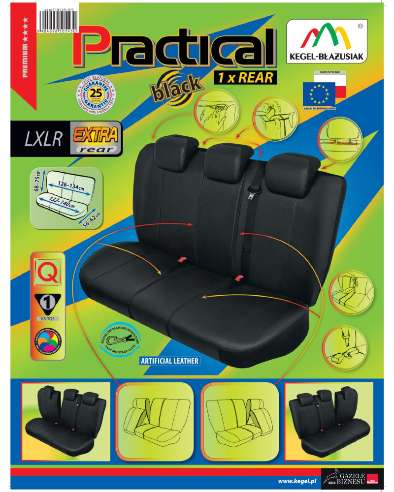 Die angepassten PRACTICAL-Bezüge sind aus extrem haltbarem Ökoleder der neuen Generation gefertigt. Jeder Bezug besteht aus einem robusten und langlebigen Material, das sich dank seiner geeigneten Konstruktion gut an den Sitz anpasst und an ihm haftet, so dass der Bezug nicht verrutschen kann. Die solide Verarbeitung garantiert eine hohe Qualität und eine lange Nutzungsdauer.