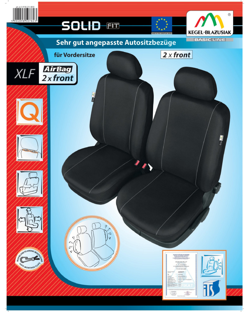 Die SOLID-Bezüge sind sehr haltbar und praktisch, aber auch geschmackvoll und elegant. Das Produkt richtet sich an diejenigen, die den Innenraum ihres Fahrzeugs verschönern und die Polsterung vor Schmutz, Abrieb und Beschädigung schützen wollen. Die Bezüge können bedenkenlos bei 40° gewaschen werden, wie auf dem Etikett empfohlen.