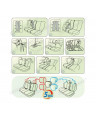 5. Stecken Sie die Montageklammern auf die Befestigungsschlaufen, heften Sie sie unter dem gegenüberliegenden Sitz zusammen und haken Sie sie an der Sitzkonstruktion ein