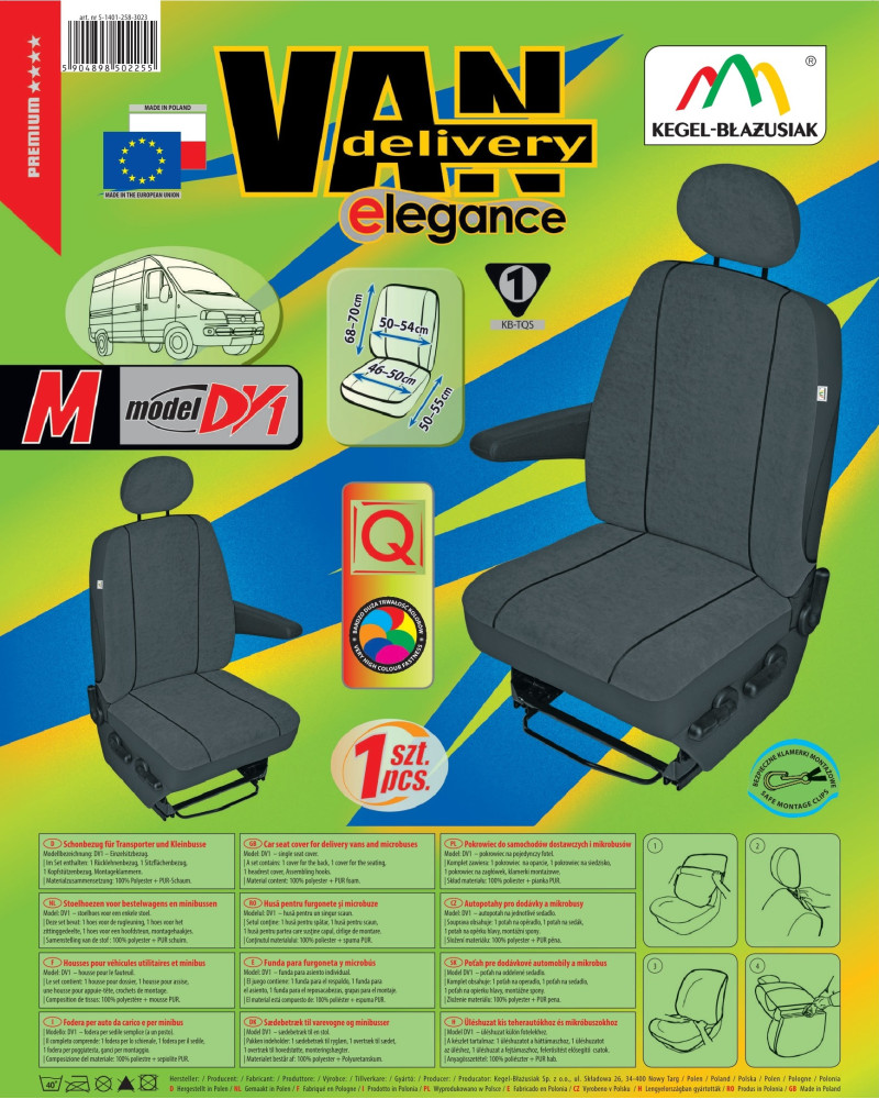 Die ELEGANCE-Bezüge sind sehr haltbar und praktisch, aber auch geschmackvoll und elegant. Das Produkt richtet sich an diejenigen, die den Innenraum ihres Fahrzeugs verschönern und die Polsterung vor Schmutz, Abrieb und Beschädigung schützen wollen. Die Bezüge können bedenkenlos bei 40° gewaschen werden, wie auf dem Etikett empfohlen.