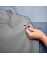 Vorhang für die Front- und die Seitenscheiben zum Abschirmen des Fahrerhauses von Wohnmobilen und Lieferwagen. Er eignet sich sehr gut dazu, das Fahrerhaus vor neugierigen Blicken Fremder draußen zu schützen. Er sorgt für ein Gefühl der Privatsphäre auch auf einem überfüllten Campingplatz bzw. Parkplatz. Er verringert den Temperaturanstieg im Inneren des Fahrzeugs. Er lässt sich leicht anbringen und abnehmen und muss weder festgeschraubt noch angeklebt werden. Dank dem in die Unterkante eingenähten Gewicht wird der Vorhang beim Ein- und Aussteigen in Position gehalten.