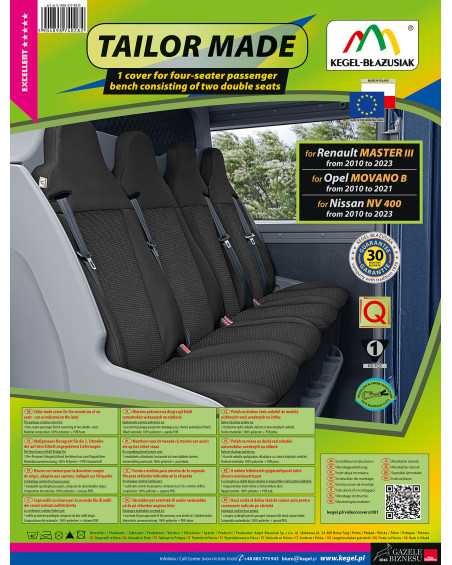 Die maßgeschneiderten TAILOR MADE-Bezüge werden aus hochwertigem Polstermaterial hergestellt, das in Verbindung mit der sorgfältigen Verarbeitung auch der kleinsten Details die anspruchsvollsten Kunden zufrieden stellt. Dank ihrer geeigneten, räumlichen Form und der spezifischen Anpassung an Ihr Fahrzeug passen sich die Bezüge perfekt an die Sitze an. Das Material haftet perfekt an den Sitzen und ersetzt deren eigentliche Polsterung. Die Materialinnenseite ist mit einem flammhemmenden PUR-Schaum laminiert, der ein Verrutschen verhindert.