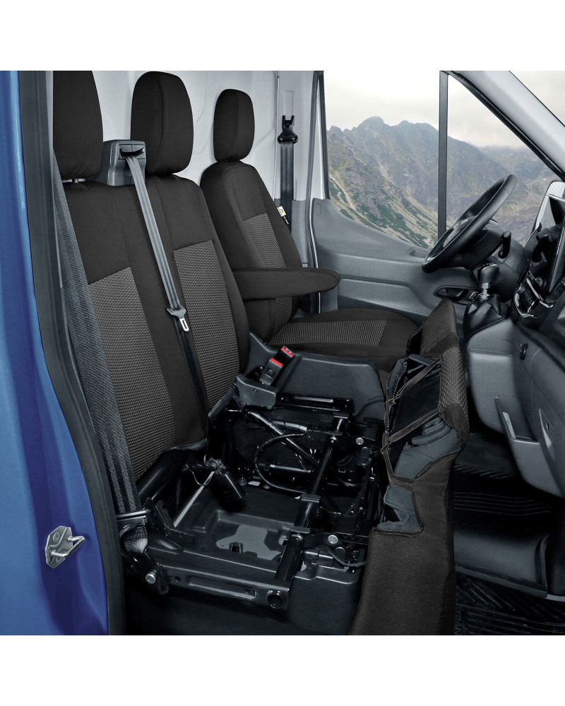 1 Bezug für Beifahrerdoppelsitzbank mit geteiltem Sitz und klappbarem Rücksitztisch