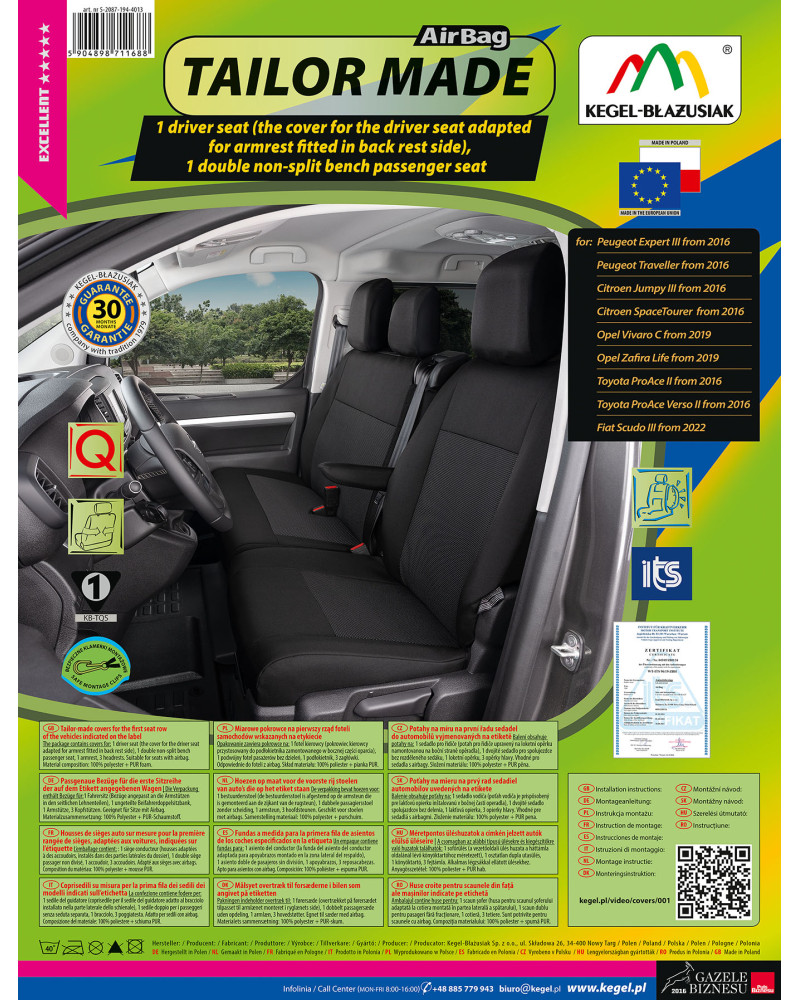 Die maßgeschneiderten TAILOR MADE-Bezüge werden aus hochwertigem Polstermaterial hergestellt, das in Verbindung mit der sorgfältigen Verarbeitung auch der kleinsten Details die anspruchsvollsten Kunden zufrieden stellt. Dank ihrer geeigneten, räumlichen Form und der spezifischen Anpassung an Ihr Fahrzeug passen sich die Bezüge perfekt an die Sitze an. Das Material haftet perfekt an den Sitzen und ersetzt deren eigentliche Polsterung. Die Materialinnenseite ist mit einem flammhemmenden PUR-Schaum laminiert, der ein Verrutschen verhindert.