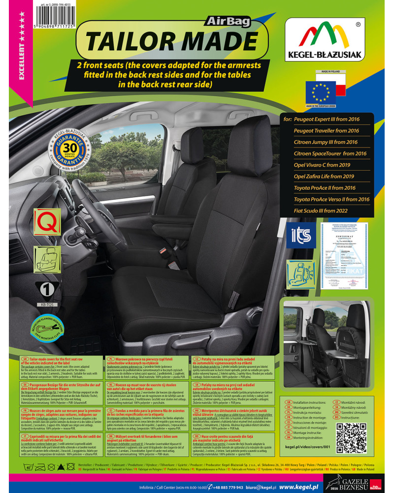 Die maßgeschneiderten TAILOR MADE-Bezüge werden aus hochwertigem Polstermaterial hergestellt, das in Verbindung mit der sorgfältigen Verarbeitung auch der kleinsten Details die anspruchsvollsten Kunden zufrieden stellt. Dank ihrer geeigneten, räumlichen Form und der spezifischen Anpassung an Ihr Fahrzeug passen sich die Bezüge perfekt an die Sitze an. Das Material haftet perfekt an den Sitzen und ersetzt deren eigentliche Polsterung. Die Materialinnenseite ist mit einem flammhemmenden PUR-Schaum laminiert, der ein Verrutschen verhindert.