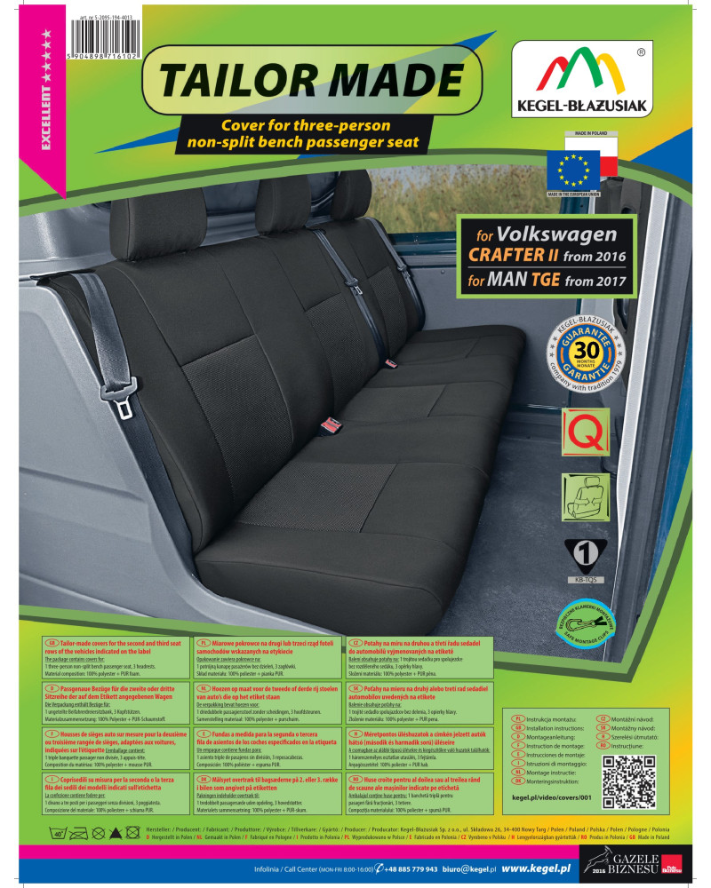 Die maßgeschneiderten TAILOR MADE-Bezüge werden aus hochwertigem Polstermaterial hergestellt, das in Verbindung mit der sorgfältigen Verarbeitung auch der kleinsten Details die anspruchsvollsten Kunden zufrieden stellt. Dank ihrer geeigneten, räumlichen Form und der spezifischen Anpassung an Ihr Fahrzeug passen sich die Bezüge perfekt an die Sitze an. Das Material haftet perfekt an den Sitzen und ersetzt deren eigentliche Polsterung. Die Materialinnenseite ist mit einem flammhemmenden PUR-Schaum laminiert, der ein Verrutschen verhindert.