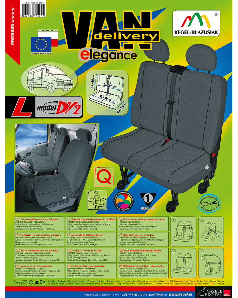 Die ELEGANCE-Bezüge sind sehr haltbar und praktisch, aber auch geschmackvoll und elegant. Das Produkt richtet sich an diejenigen, die den Innenraum ihres Fahrzeugs verschönern und die Polsterung vor Schmutz, Abrieb und Beschädigung schützen wollen. Die Bezüge können bedenkenlos bei 40° gewaschen werden, wie auf dem Etikett empfohlen.