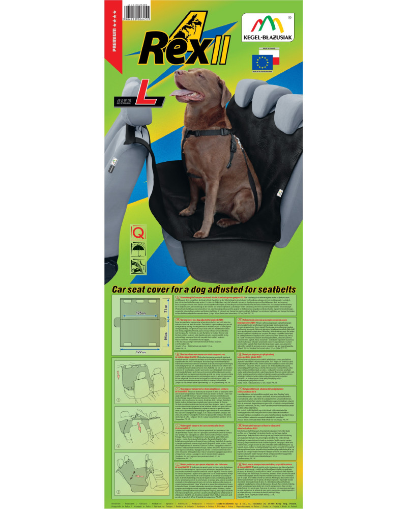 Der Schonbezug für die Beförderung eines Hundes auf der Rücksitzbank. Der Schonbezug, gehangen in Form der Hängematte", verhindert, dass sich der Hund bei Vollbremsung verletzt. Er schützt die Rücksitzbank (auch die Seitenteile) wirksam vor Verschmutzungen und Beschädigungen. Nicht beschmutzend, leicht zu reinigen, er nimmt keine Gerüche auf und saugt keine Flüssigkeit auf. Antiallergisch und körperfreundlich für den Hund und Menschen. Durch integrierte Metallstreben, die es möglich machen, den Schonbezug an den vorderen und hinteren Kopfstützen, aufzuhängen" ist der Schonbezug sehr leicht zusammenzulegen und mit Beschmutzungen (Platenschmutz, Hundehaare usw.) abzunehmen. Fest, widerstandsfähig und wasserdicht, geeignet für die Beförderung von großen und kleinen Hunden in jedem Personenkraftwagen, ausgestattet mit verstellbaren vorderen und hinteren Kopfstützen.