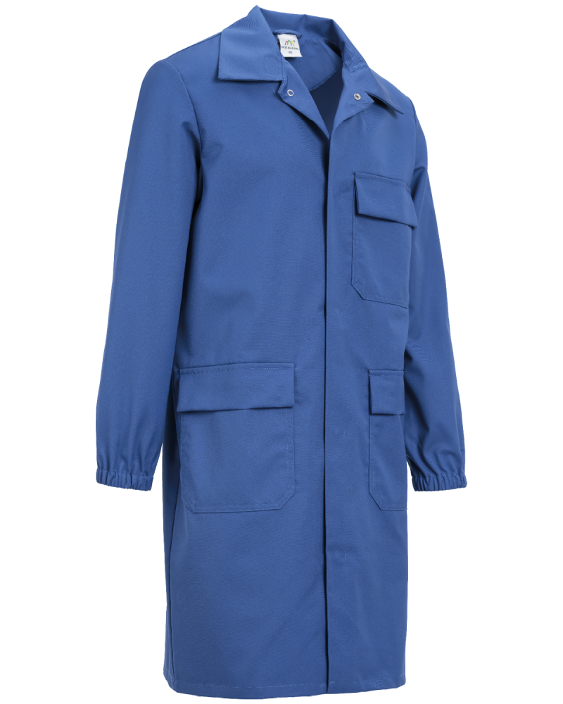 - Gerade geschnittene Schürze, mit Druckknöpfen bis zum Hals verschließbar;