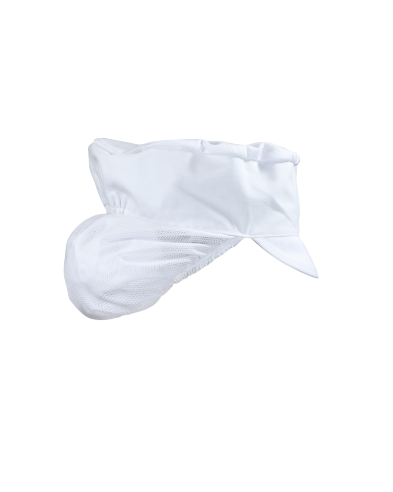 • im hinteren Teil der Mütze Haarnetz mit Regulierungsgummi;