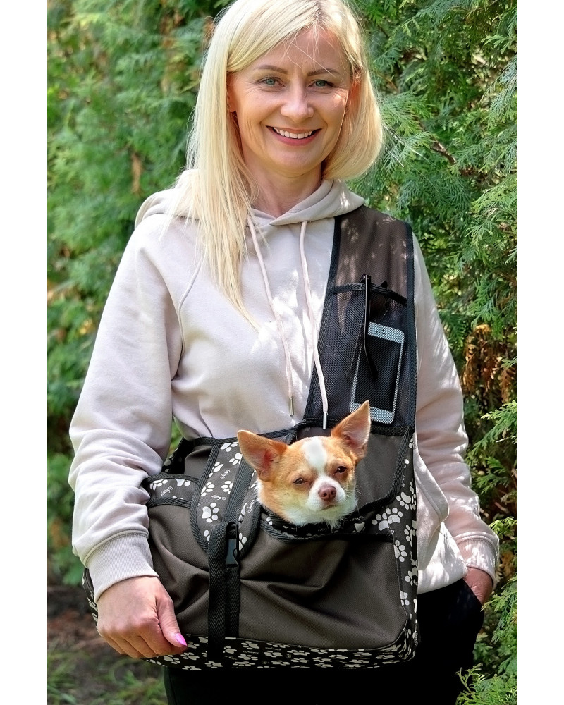 Es handelt sich um eine bequeme und praktische Tasche zum Tragen von kleinen Hunden. Sie stellt den Komfort für den getragenen Hund und dessen Halter sicher. Sie bietet dem Hund einen sicheren Platz und eine solide Unterlage. Deren ergonomische Konstruktion und ein breiter und verstellbarer Armgurt ermöglichen dem Halter ein druckfreies Tragen des Hundes/der Hunde auch bei langen Spaziergängen. Dank des sorgfältig durchdachten Designs fühlen sich Hunde, die in der Tasche befördert werden, sicher und wohl. Die Nähe des Halters erhöht noch deren Sicherheitsgefühl. Die Tasche hat einen gepolsterten Boden, um den Hund einen soliden Stand zu bieten und Taschen, um kleine Gegenstände wie ein Smartphone, die Leine, Leckerlis, etc. zu verstauen. Die Tasche ermöglicht dem Halter nicht nur das einfache und bequeme Tragen des Haustieres, sondern sorgt dafür, dass er beide Hände frei hat.