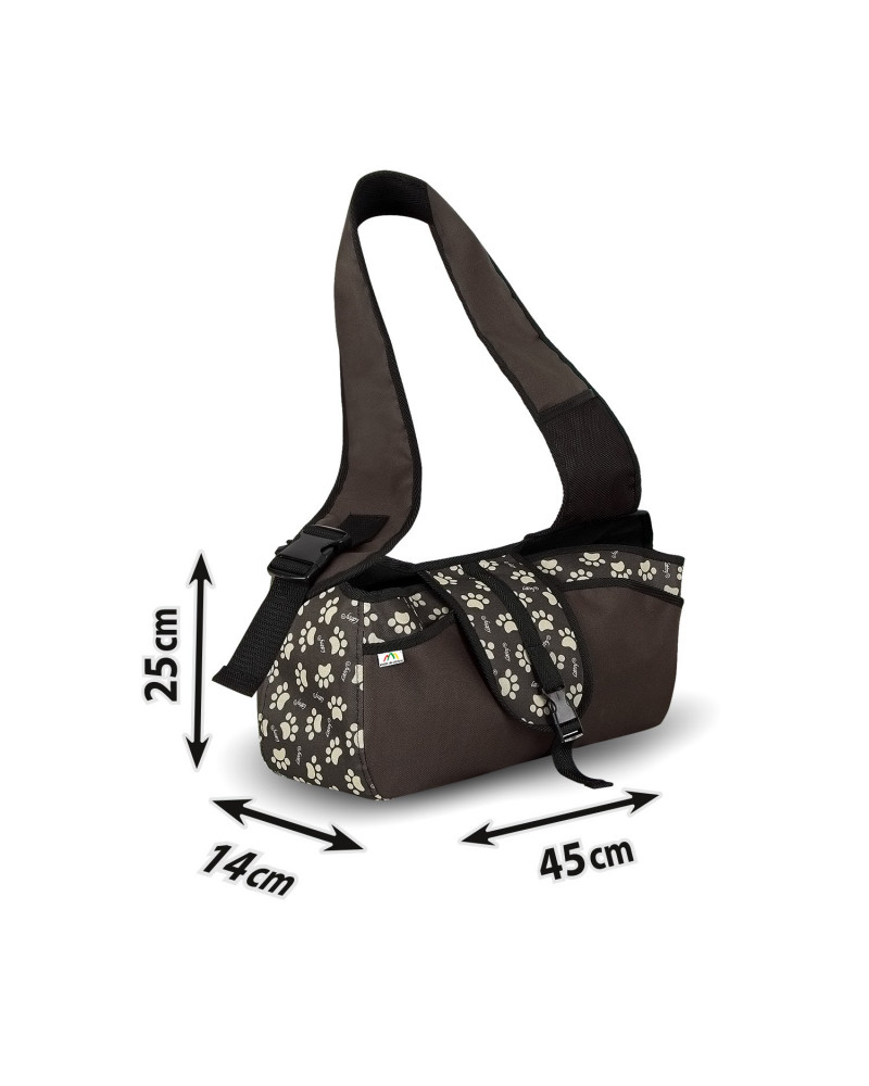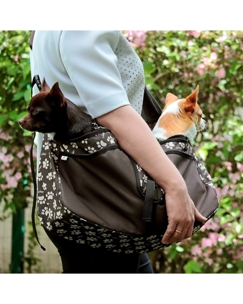 Es handelt sich um eine bequeme und praktische Tasche zum Tragen von kleinen Hunden. Sie stellt den Komfort für den getragenen Hund und dessen Halter sicher. Sie bietet dem Hund einen sicheren Platz und eine solide Unterlage. Deren ergonomische Konstruktion und ein breiter und verstellbarer Armgurt ermöglichen dem Halter ein druckfreies Tragen des Hundes/der Hunde auch bei langen Spaziergängen. Dank des sorgfältig durchdachten Designs fühlen sich Hunde, die in der Tasche befördert werden, sicher und wohl. Die Nähe des Halters erhöht noch deren Sicherheitsgefühl. Die Tasche hat einen gepolsterten Boden, um den Hund einen soliden Stand zu bieten und Taschen, um kleine Gegenstände wie ein Smartphone, die Leine, Leckerlis, etc. zu verstauen. Die Tasche ermöglicht dem Halter nicht nur das einfache und bequeme Tragen des Haustieres, sondern sorgt dafür, dass er beide Hände frei hat.