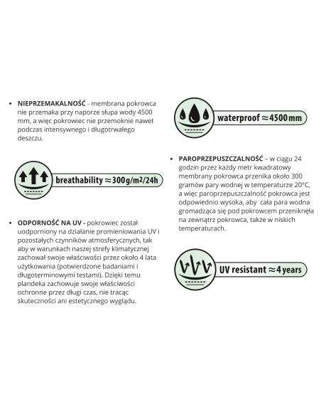 Wasserdichter Schonbezug für das Quad, der die Feuchtigkeit unter dem Schonbezug abführt. Er schützt das Quad ganzjährig vor schädlichen Umwelteinflussen. Er ist leicht aufzubringen und abzunehmen. Dank einer speziellen Struktur und Anfertigung aus wasserdichter dampfdurchlässiger Membran und schwer wasserdurchlässigem dampfdurchlässigem Material ist der Schonbezug im Regen fast vollständig dicht, und führt zugleich bei positiver Umgebungstemperatur die unter dem Schonbezug angesammelte Feuchtigkeit nach außen ab. Der Schonbezug schützt vor Rostflecken, Ausbleichen und Mattwerden des Lacks und der Chromteile. Er schützt vor den meisten Kratzern. Dank Einsatz eines Schonbezuges bleibt die Korrosion beschränkt. Der Schonbezug schützt vor Regen (darunter auch saurerem), Sonnenstrahlung (UV), Staub, Vogelkot, Blättern und Baumsaft, Schnee und Raureif. Der Schonbezug zeichnet sich durch eine gute Passform aus. Er wird mit Hilfe eines traditionellen Tunnelzuges mit Kordel über dem ganzen Quad festgespannt, ist aus festem glattem Material (vom Inneren) angefertigt, so dass er sogar bei starkem Wind sicher eingesetzt werden kann. 2 Jahre Garantie.