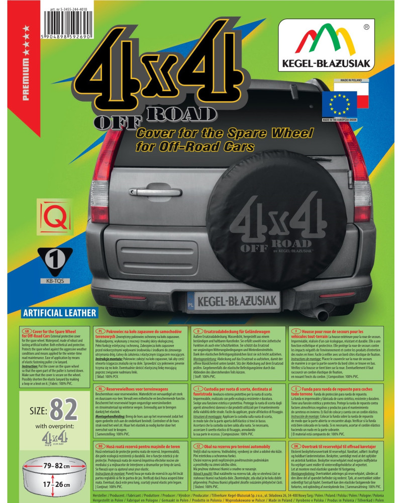 Äußere Ersatzradabdeckung. Wasserdicht, hergestellt aus einem beständigen und haltbaren Ökoleder. Sie erfüllt sowohl eine ästhetische Funktion als auch eine Schutzfunktion. Sie schützt das Ersatzrad vor ungünstigen Witterungsbedingungen und Winterdienstmitteln. Dank den elastischen Befestigungsbündchen lässt sie sich leicht aufziehen. Montageanleitung: Abdeckung auf das Ersatzrad so aufziehen, damit der offene Bündchenteil unten landet. Sitz der Abdeckung auf dem Ersatzrad prüfen. Gegebenenfalls die elastische Befestigungsleine durch das Abbinden des überstehenden Teils kürzen.