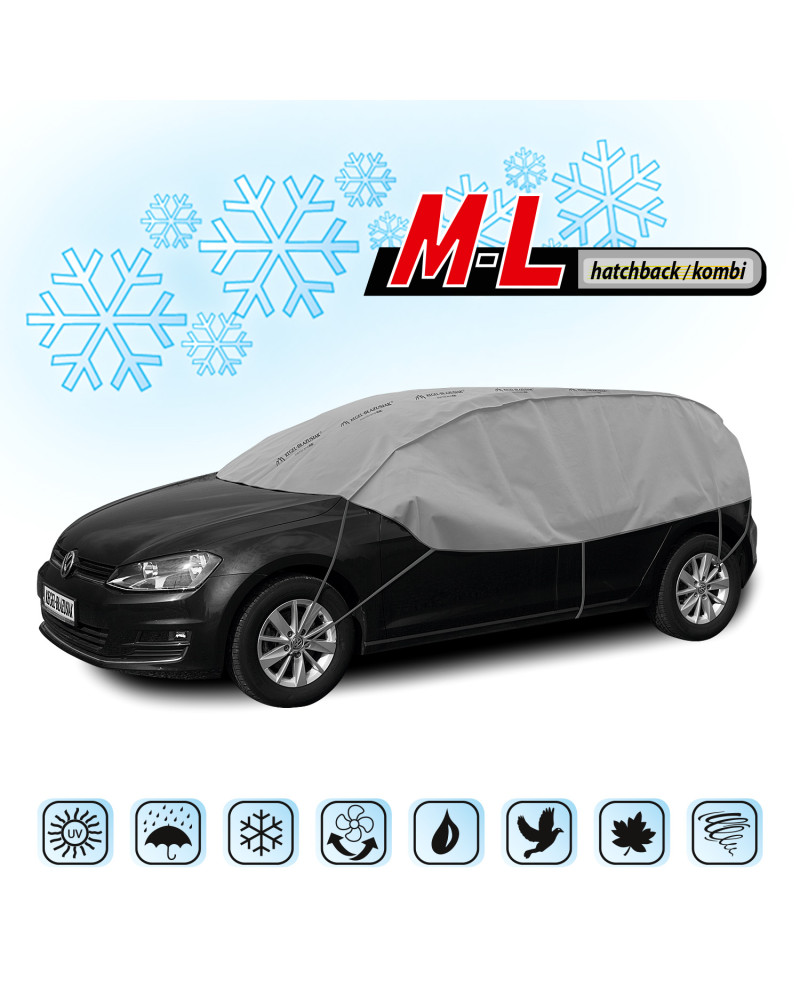 Schutzhülle für den Ganzjahresgebrauch. Im Winter schützt die Schutzhülle die Scheiben und Spiegel eines draußen geparkten Wagens vor Frost und Schnee. Sie deckt die Klinken und Wagenschlösser ab und schützt diese vor dem Gefrieren. Außerdem schützt die Schutzhülle die Scheiben und das Wagendach das ganze Jahr über vor Baumsäften, Vogelexkrementen und Staubablagerungen. Die Schutzhülle ist schwer wasserdurchlässig und schwer dampfdurchlässig.