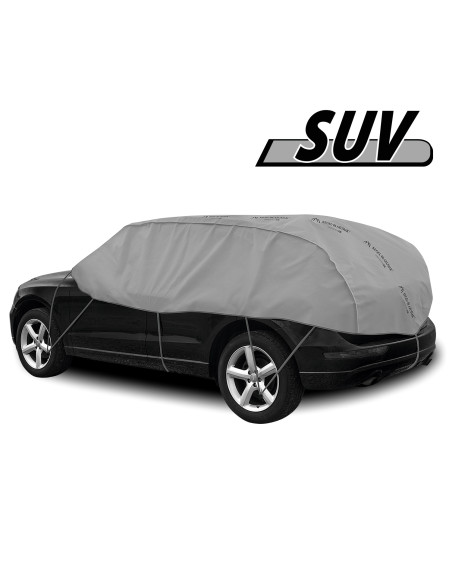 Die Oberseite der Abdeckung besteht aus bis zu 4 Lagen Material, das dick, stark und haltbar ist. Es wird nicht nass, während es die Feuchtigkeit von der Unterseite der Abdeckung ableitet. Das glatte SPUNBOND auf der Innenseite verursacht keine Kratzer am Fahrzeug.