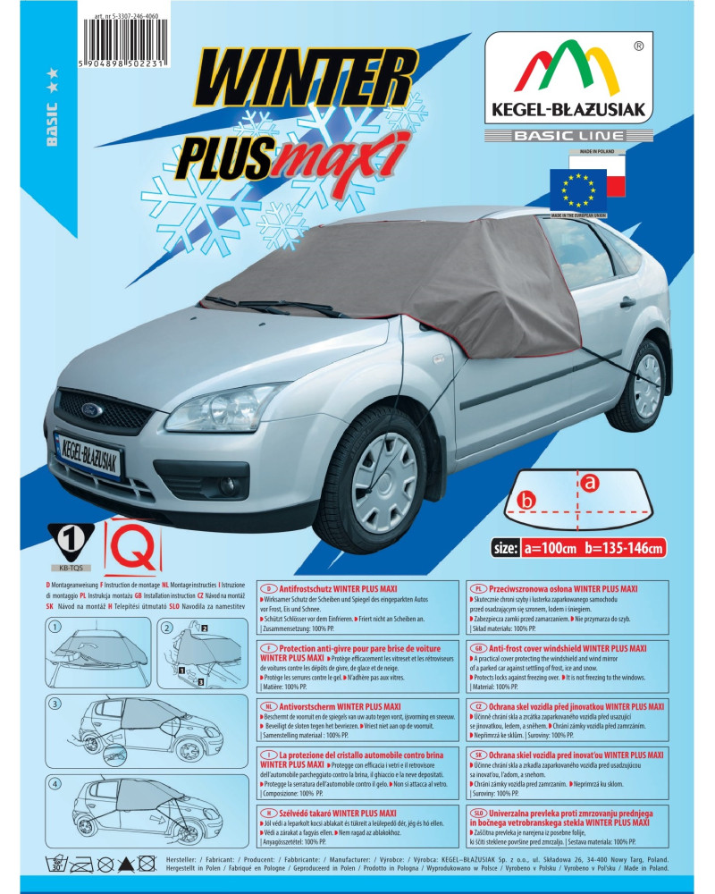 Die Frontscheibenabdeckung WINTER schützt die Scheiben eines geparkten Wagens wirksam vor Frost, Eis und Schnee. Sie ist aus hochwertigem Material, dem SPUNBOND-Vliesstoff, mit hoher Frostbeständigkeit gefertigt. Sie wird aus einem starken und zugleich für den Wagen sanften Material hergestellt, weshalb sie weder das Glas beschädigt noch zerkratzt. Es handelt sich um ein wiederverwendbares Produkt. Sie wird in einer Universalgröße hergestellt, die in den meisten Automodellen zur Anwendung kommt. Das Produkt ist sehr einfach zu montieren und zu reinigen.