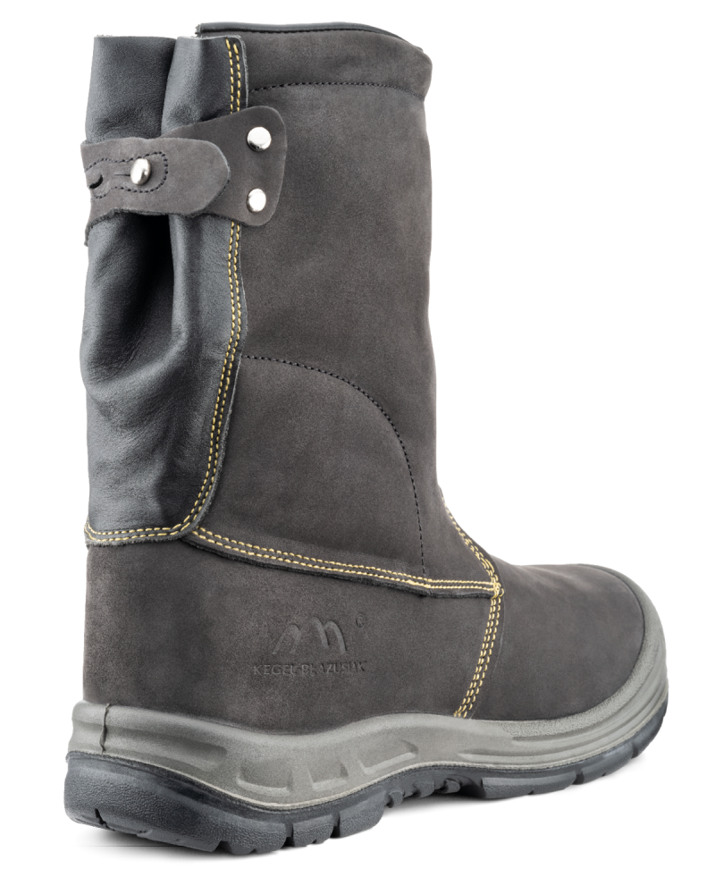 Schweißersicherheitsstiefel, bei denen wir die wichtigsten Lösungen der firmeneigenen Kollektion angewandt haben, werden mit Präzision genäht und sind für den Einsatz unter schwierigen Bedingungen bestimmt, an Orten wie: Hüttenwerke, Kokereien, Metallgießereien und jegliche metallurgische Werke mit einem höheren Risiko des Kontakts mit flüssigen Metallen. Der Gummi und das Polyurethan in der Sohle bieten Schutz vor niedrig konzentrierten Lösungen von Säuren und Basen und kurzzeitigem Kontakt mit heißem Untergrund bis zu 300°C, während die Verwendung von wasserfestem Leder vor Wasserdurchlässigkeit schützt. Die Stiefel entsprechen der Norm EN ISO 20349 und sind für Hüttenarbeiter und Gießer bestimmt.