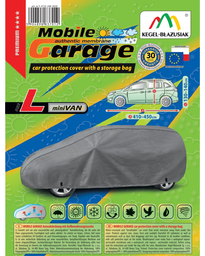 Wasserdichter Schonbezug für das ganze Kraftfahrzeug, der die Feuchtigkeit unter dem Schonbezug abführt. Er schützt das Kraftfahrzeug ganzjährig vor schädlichen Umwelteinflüssen. Der Schonbezug ist für die Fahrzeugmodelle geeignet, die in der oben genannten Tabelle aufgeführt wurden. Er ist leicht aufzubringen und abzunehmen. Dank einer speziellen Struktur und Anfertigung aus dreischichtiger wasserdichter dampfdurchlässiger Membran und schwer wasserdurchlässigem dampfdurchlässigem Material ist der Schonbezug im Regen fast vollständig dicht, und führt zugleich bei positiver Umgebungstemperatur die unter dem Schonbezug angesammelte Feuchtigkeit nach außen ab.