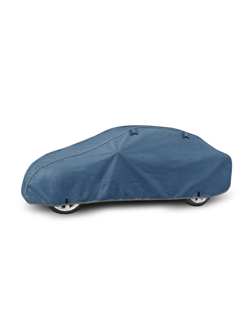 Ganzjährige Membranschutzplane für das Auto mit weichem Innenfutter und witterungsbeständiger Oberfläche. Vollständig aus vierschichtigem Material mit wasserabweisender, dampfdurchlässiger Membran gefertigt. Dadurch ist die Plane komplett wasserdicht, leitet aber den Wasserdampf von innen ab. Ein mit der Perfect Garage abgedeckter PKW bleibt bei Regen trocken, wobei der Wasserdampf durch die Membran verdampft und das Fahrzeug so gegen Korrosion geschützt wird. Darüber hinaus schützt die Stoffgarage gegen Rostflecken, Ausbleichen und Glanzverlust von Lack und Chromteilen. Schützt zudem gegen Regen (auch sauren Regen), Sonne (UV-Strahlung), Staub, Vogelausscheidungen, Blätter, Baumharz, Schnee und Rauhreif. Die weiche Polsterung der Plane verhindert die meisten Kratzer und Lackabschürfungen.