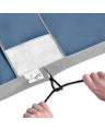 Die Plane passt sich elastisch an die Form des Fahrzeugs an. Sie wird mittels eines herkömmlichen Kordelzugs rund um das Fahrzeug solide befestigt und besteht aus einem festen und auf der Innenseite weichen Material. So kann das Produkt auch bei starkem Wind genutzt werden. Leicht anzubringen und zu entfernen.