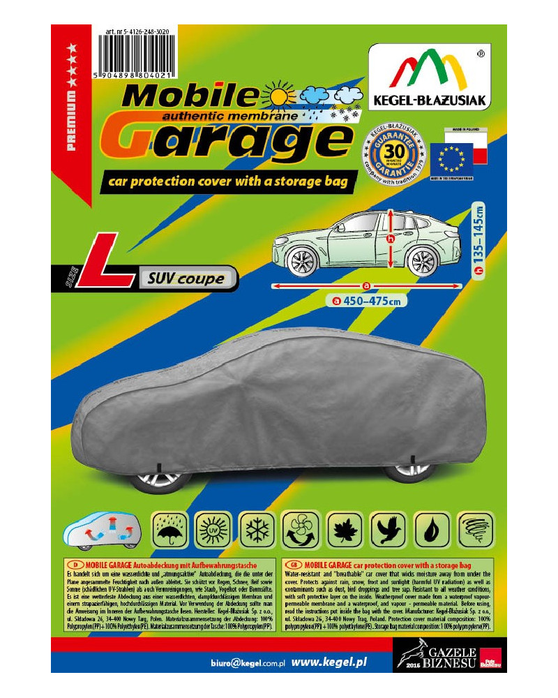 Gute Fahrzeugabdeckungen-Planen sollten das Auto nicht nur vor Niederschlägen, Verschmutzung und Sonnenstrahlen schützen, sondern auch sicher sein. Dies zeichnet gerade die Fahrzeugabdeckungen-Planen von Kegel-Błażusiak aus. Unsere Spezialisten führen Langzeittests unserer Fahrzeugabdeckungen-Planen durch. Dabei testet man die Wirksamkeit des Schutzes der Abdeckung-Plane vor Witterungsbedingungen sowie deren Wasserbeständigkeit, die Wasserdampfableitung unter der Abdeckung, die Sicherheit der Abdeckung für Fahrzeuglack und die Wirksamkeit der Befestigung der Abdeckung am Fahrzeug unter normalen und extremen Wetterbedingungen. Die Firma Kegel Błażusiak stellt nur die Produkte her, deren Langzeittests positiv ausgefallen sind.