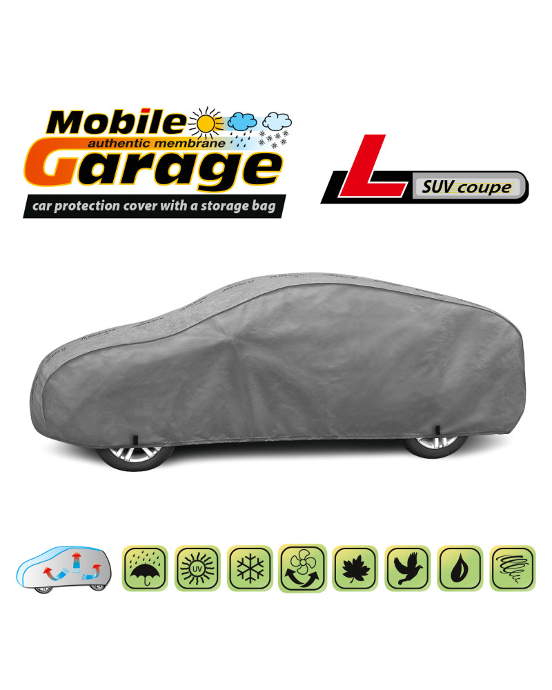Wasserdichter Schonbezug für das ganze Kraftfahrzeug, der die Feuchtigkeit unter dem Schonbezug abführt. Er schützt das Kraftfahrzeug ganzjährig vor schädlichen Umwelteinflüssen. Der Schonbezug ist für die Fahrzeugmodelle geeignet, die in der oben genannten Tabelle aufgeführt wurden. Er ist leicht aufzubringen und abzunehmen. Dank einer speziellen Struktur und Anfertigung aus dreischichtiger wasserdichter dampfdurchlässiger Membran und schwer wasserdurchlässigem dampfdurchlässigem Material ist der Schonbezug im Regen fast vollständig dicht, und führt zugleich bei positiver Umgebungstemperatur die unter dem Schonbezug angesammelte Feuchtigkeit nach außen ab.